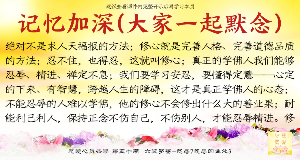 保持正念不伤自己,不伤别人,才能忍辱精进。修心的路很长,不靠忍辱怎么修?没有禅定的心,怎么有定后所得的智慧?